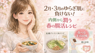 2月・3月は、寒暖差や花粉、さらには新生活へのプレッシャーなど、お肌にとっては「ゆらぎ」のオンパレード。化粧水をバシャバシャ塗っても乾燥が止まらない…そんな時は、外側からのケアをお休みして**「内側(腸)」**に目を向けてみませんか?美肌は...