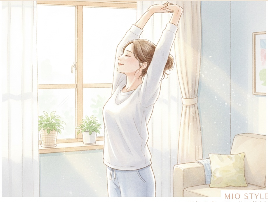 布団から出る前でも、カーテンを開けた後でもOK!たった1分で自律神経のスイッチを「休息」から「活動」へ、心地よく切り替えます。