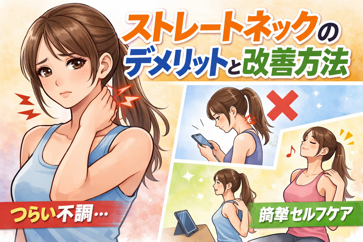 ストレートネックのデメリットと、今日からできる改善方法をわかりやすく紹介します。